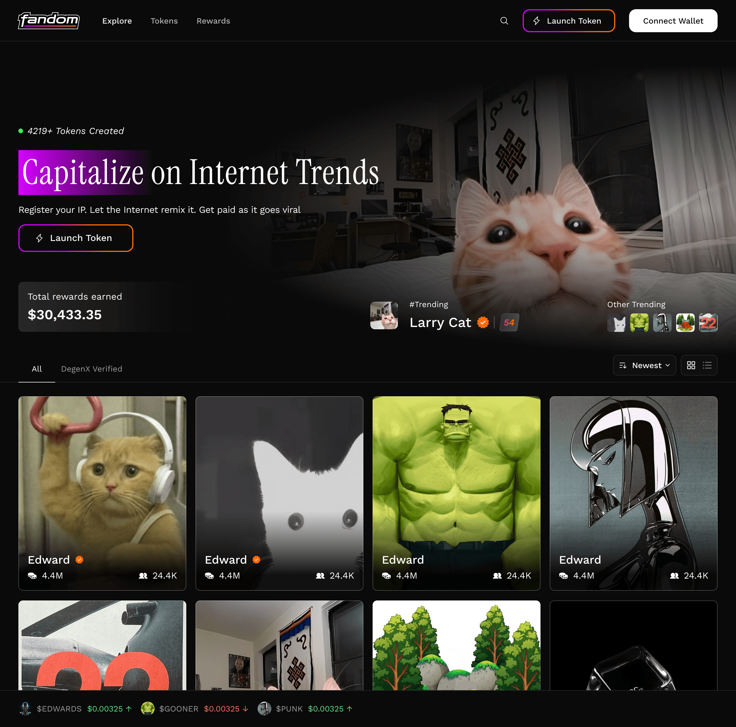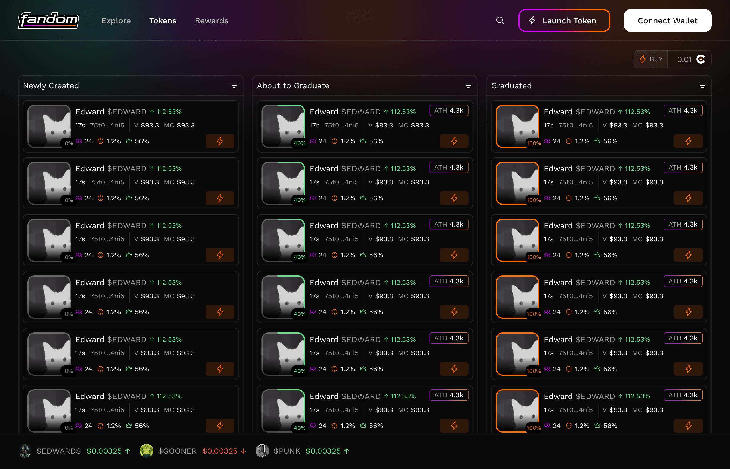 Fandom.world is a memecoin launchpad built to make token creation simple, fast, and accessible to anyone. Inspired by platforms like pump.fun, it reimagines the launch experience with a strong focus on usability and clarity.