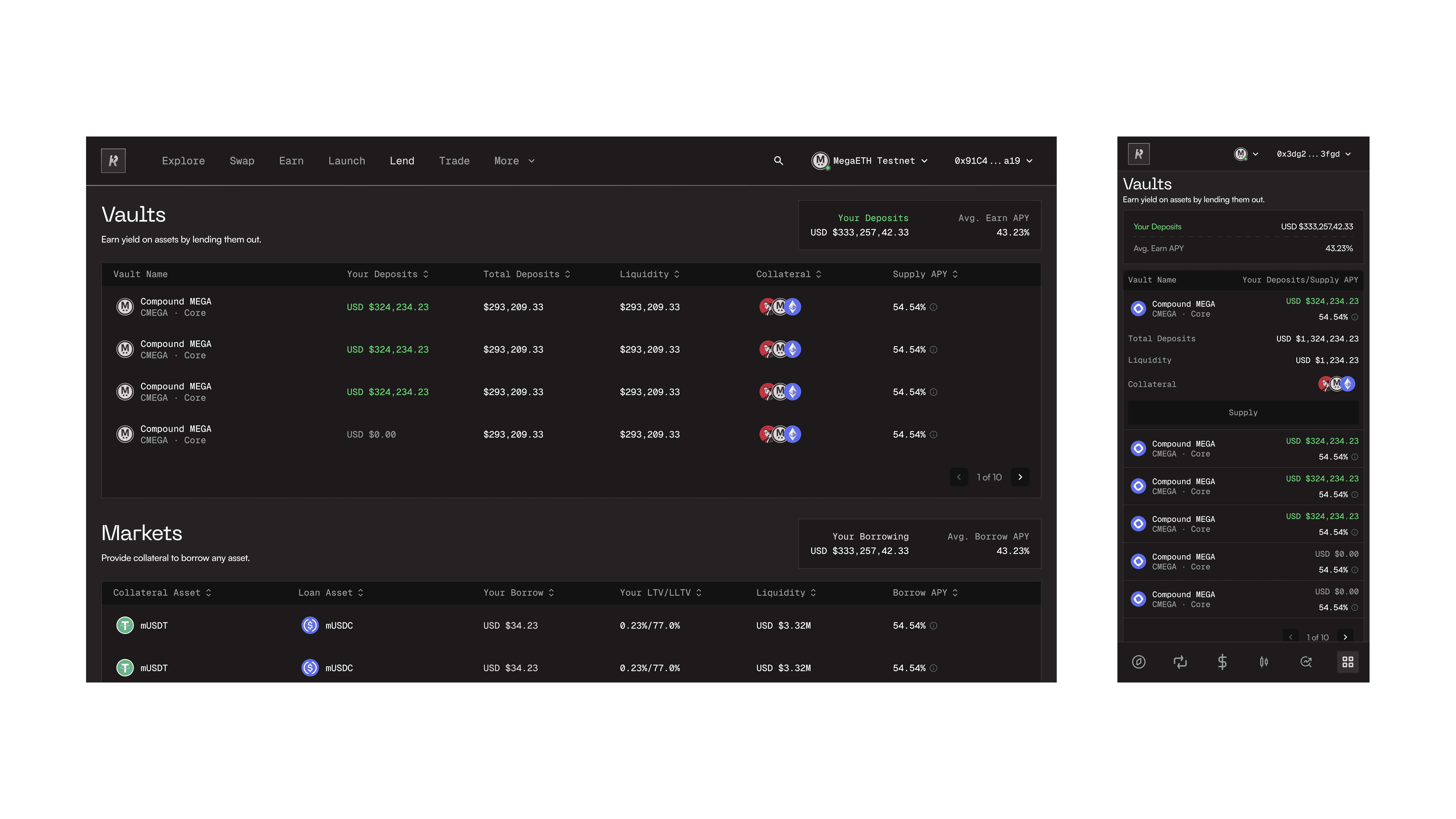 Lend and Borrow were fully designed in Figma. They haven't shipped in production as the engineering scope didn't fit in the 6-week window.