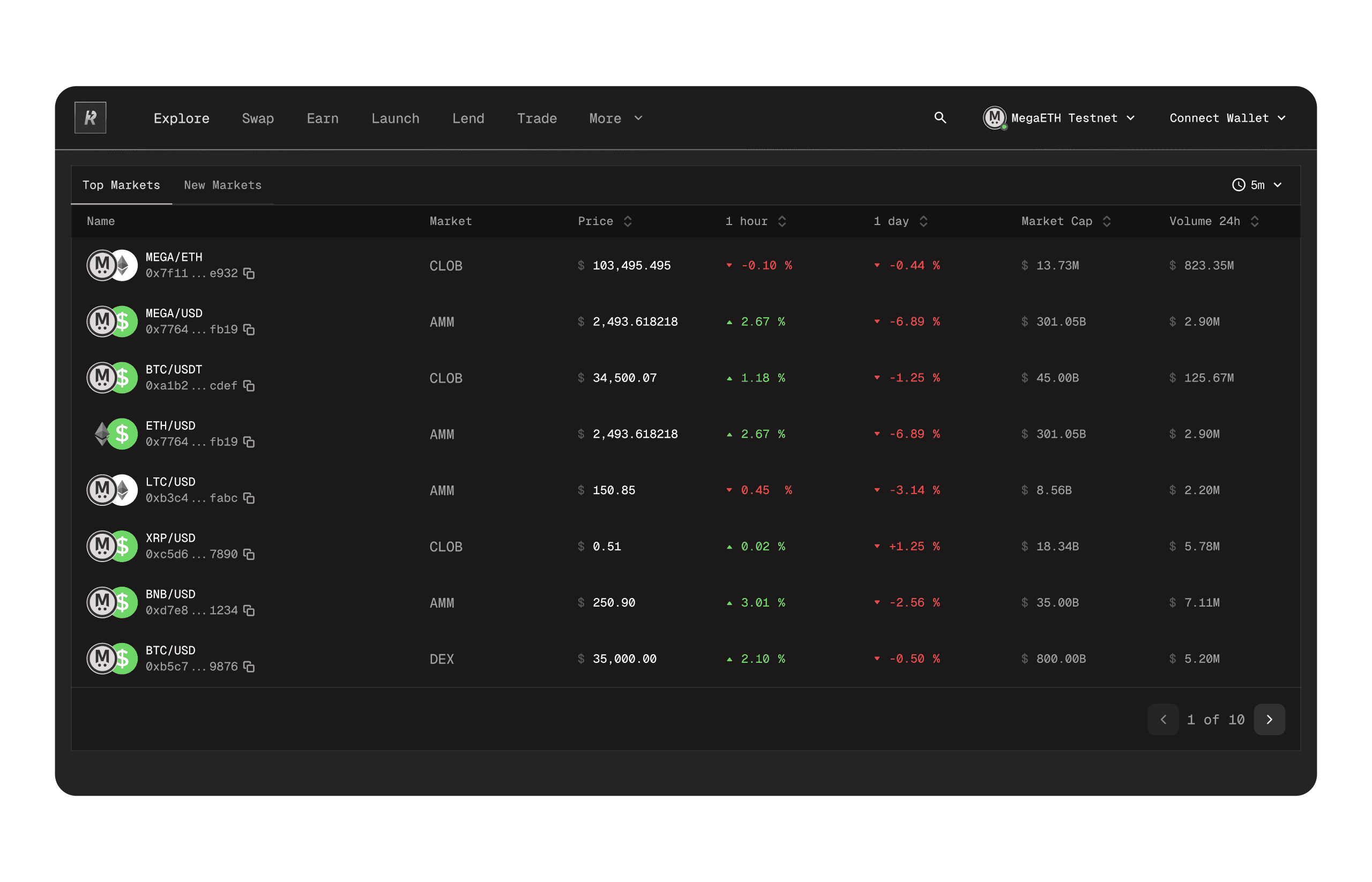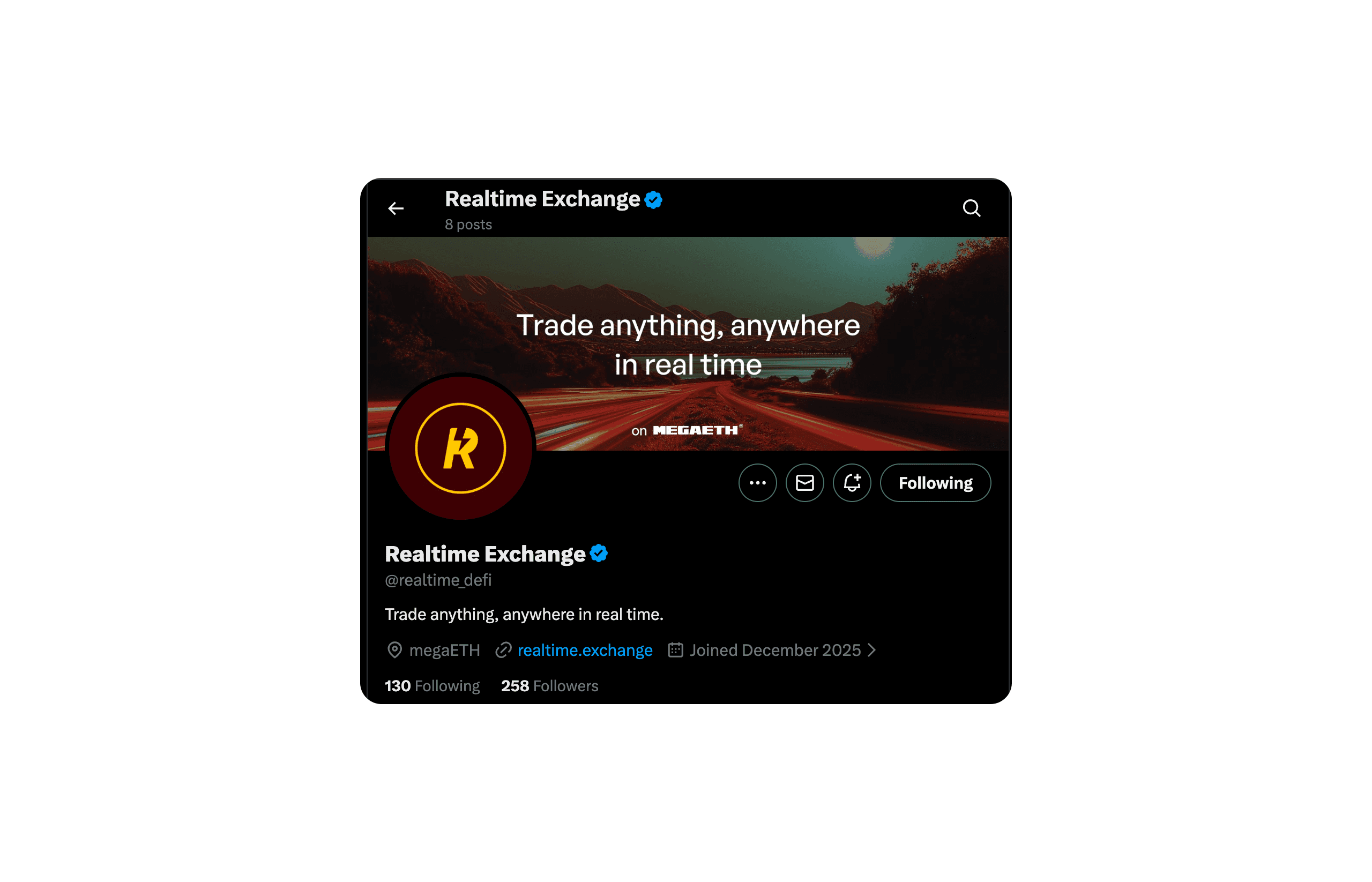Realtime Exchange is a DeFi superapp built on MegaETH that enables truly real-time on-chain trading.