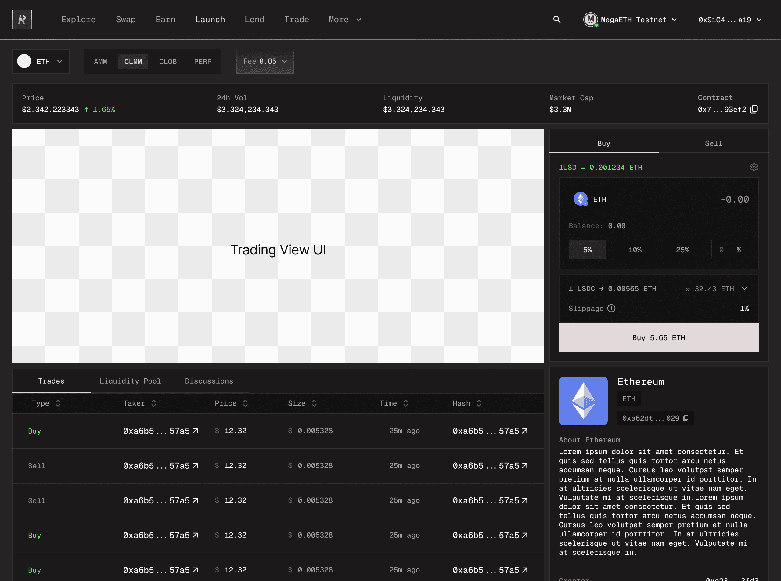 A key part of my work was translating MegaETH’s real-time infrastructure into an interface that supports fast decision-making and smooth interactions while keeping complex DeFi mechanics understandable. I designed the trading and liquidity experiences, simplified multi-step blockchain interactions, and established a scalable visual system that could support multiple financial tools within the same ecosystem. By focusing on clear information hierarchy, responsive transaction feedback, and efficient interaction patterns, the product enables users to access trading, liquidity, and other DeFi tools from a single unified environment. This approach not only improves usability but also strengthens the chain’s ecosystem by concentrating liquidity, reducing user friction, and creating a central hub where users can interact with the broader MegaETH network.